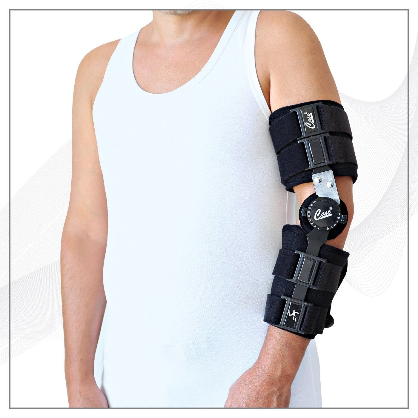Diese Ellbogen-Gelenk-Orthese ist zur Stabilisierung des Ellbogengelenks , sowie Ober- und Unterarms. Bei Frakturen, schwerwiegenden Sportverletzungen, Ellbogen-Prellungen oder Verstauchungen kann der gesamte Arm dank eines einstellbaren Scharniers stabilisiert werden. Den Winkel der Stabilisierung kann der Nutzer selber einstellen, um die bestmögliche Entlastung zu erhalten. Der Heilungsprozess wird erheblich verbessert und die Genesung beschleunigt.