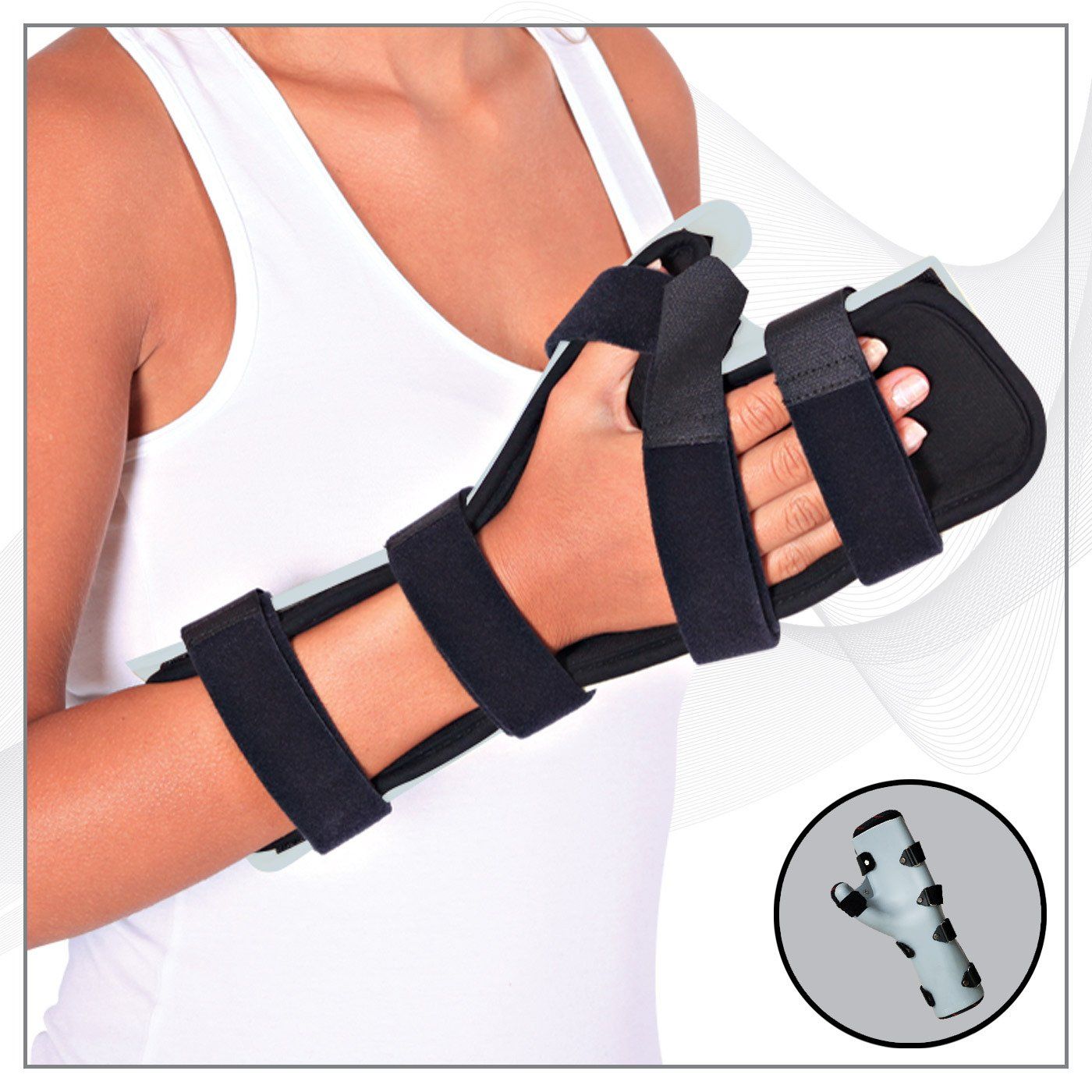 Diese Handgelenk-Unterarm-Orthese ist zur Stabilisierung des Handgelenks und des Daumens geeignet und bietet durch seine Größe Stabilität auch im Unterarm-Bereich. Außenseitig besteht es aus einem thermoplastischem Material. Innenseitig hat es Schaumstoff integriert und ist atmungsaktiv. Der gesamte Arm wird wie eine Schiene stabilisiert. Bei schweren Sportverletzungen hilf es eine schnellere Heilung herbeizuführen.