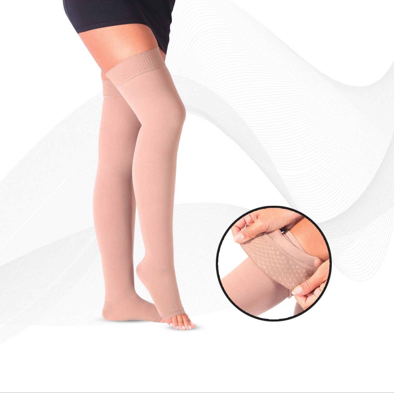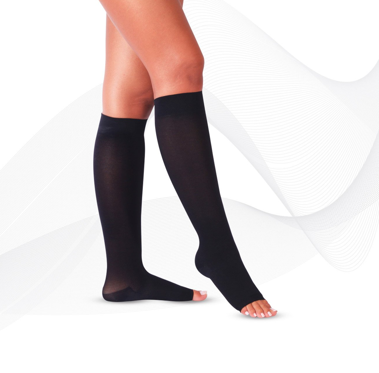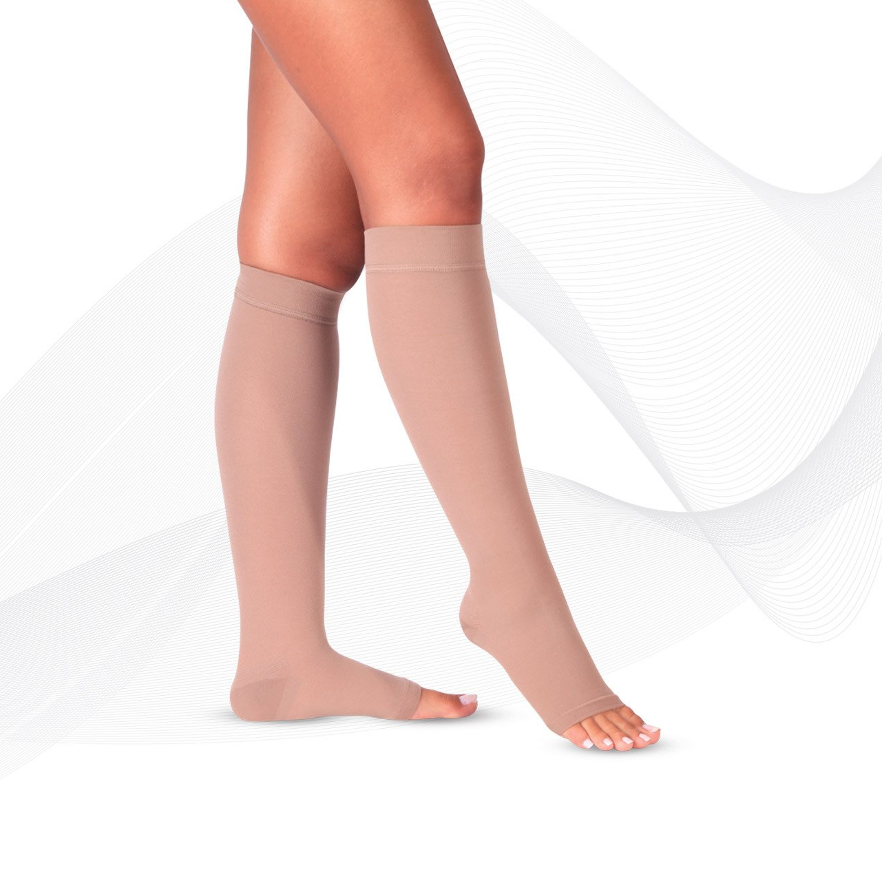 Unsere Kompressions-Knie-Strümpfe, wahlweise mit Zehenausschnitt, unterstützen die Funktion Ihrer Venen angenehm und lindern die Schmerzen. Gerade im Alltagsleben, wenn Sie schwere Beine haben, bieten die Strümpfe eine optimale Blutzirkulation. Der Erholungseffekt ist mit unseren Strümpfen sichtlich merkbar. Ob bei Reisen oder im Beruf haben sie eine thermoregulierende Wirkung und sind angenehm zu tragen.