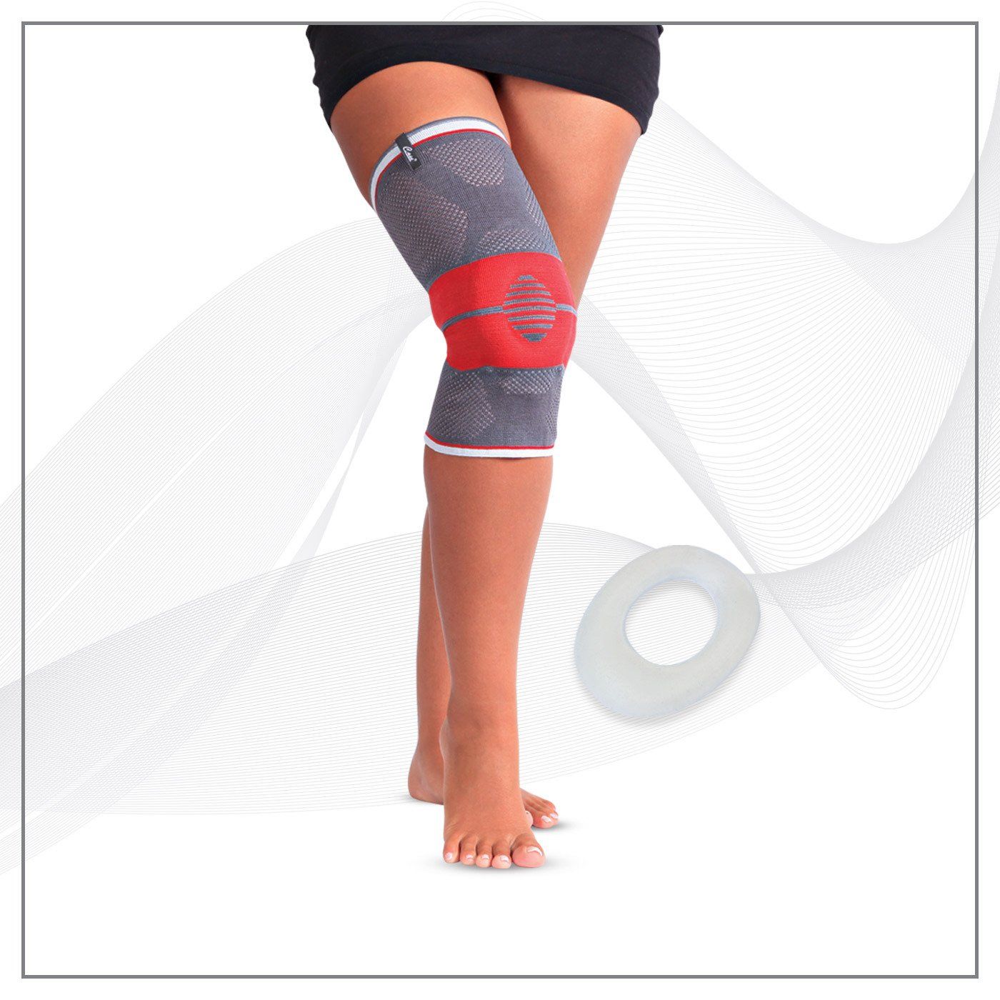 Diese Knie-Gelenk-Bandage hat eine integrierte Pelotte, die im Bereich der Kniescheibe eine Aussparung hat zur schonenden Entlastung. Die Pelotte passt sich durch seine ergonomische Form entlang der Kniescheibe an. Ferner hat sie eine Splint integriert, der zusätzliche Stabilität gewährleistet und das Knie besser fixiert. Der Einsatzbereich ist bei Miniskusschäden und Kniescheibenirritationen- sowie Verschiebungen ideal. Ebenfalls bei Ödemen und Sportverletzungen ist der Einsatz hilfreich. Das Material ist dehnbar, atmungsaktiv und bietet besten Tragekomfort.
